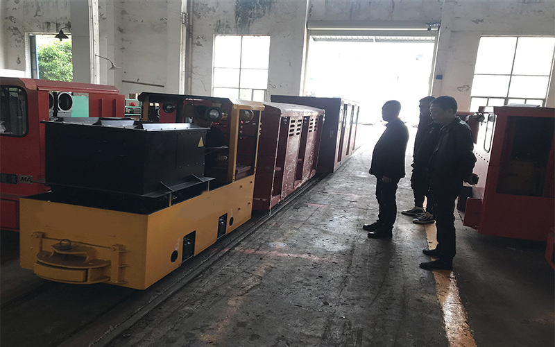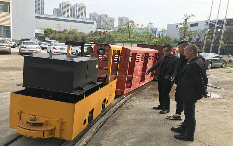 礬礦客戶來廠檢驗定制的井下鋰電池湘潭電機(jī)車。