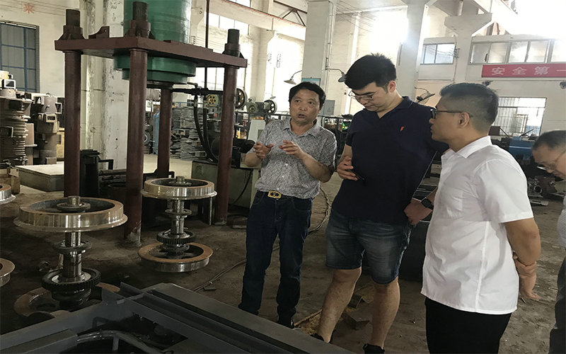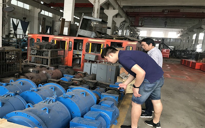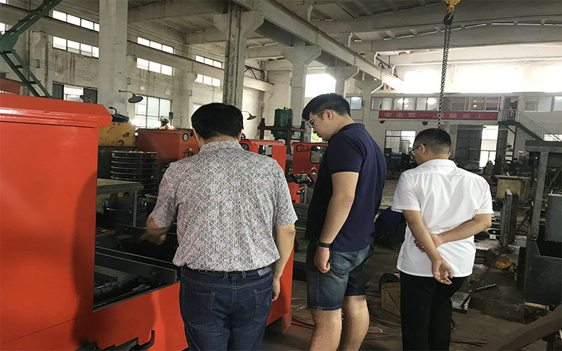 領導給客戶詳細介紹了我廠的產(chǎn)品,并一同進入生產(chǎn)車間實際了解礦用電機車及礦用牽引電機等配件的生產(chǎn)、測試。